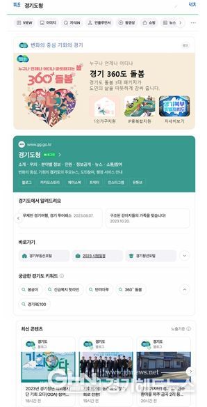 경기헤드뉴스 성미연 기자 | 경기도가 포털서비스 네이버와 협업해 네이버에서 경기도 관련 공공정보를 검색하면 도에서 공식 제공하는 공공정보를 더 쉽고 직관적으로 확인할 수 있는 ‘공공정보 특화’ 검색 서비스를 7일부터 시작했다.