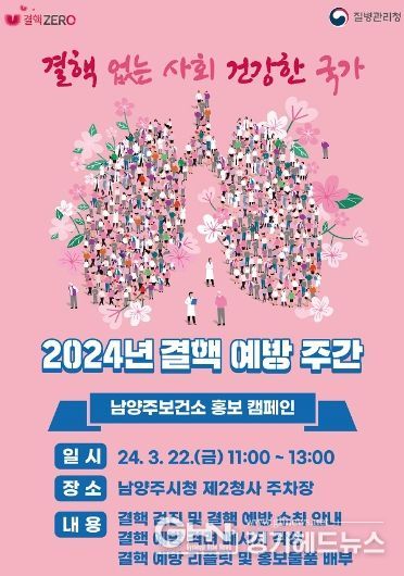 결핵예방 캠페인은 ‘결핵 없는 사회, 건강한 남양주!’라는 슬로건을 내걸고, 결핵예방 및 관리의 중요성을 알리고 결핵에 대한 경각심을 고취하기 위해 진행된다.