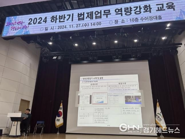 경기헤드뉴스 성미연 기자 | 광주시는 지난 27일 자치법규 입안 담당자와 신규 공직자 등 170여 명의 공직자를 대상으로 ‘2024년 하반기 법제업무 역량 강화 교육’을 했다.