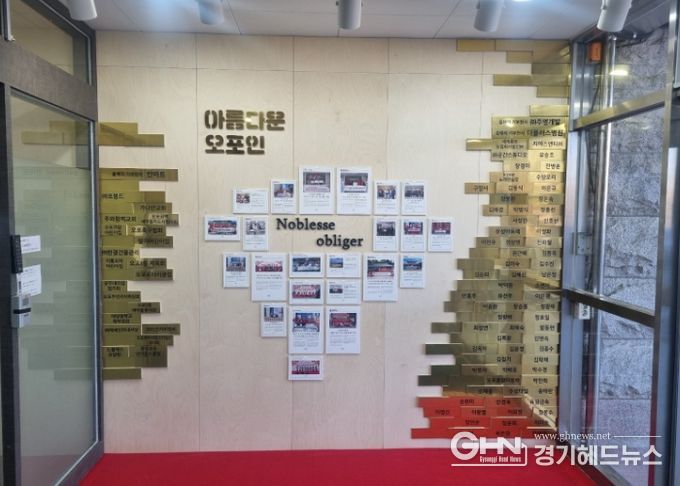 경기헤드뉴스 성미연 기자 | 광주시 오포1동 행정복지센터는 6일 행정복지센터 로비에 아름다운 나눔 실천 후원자를 예우하기 위한 ‘아름다운 오포인’ 기부의 전당을 조성했다.