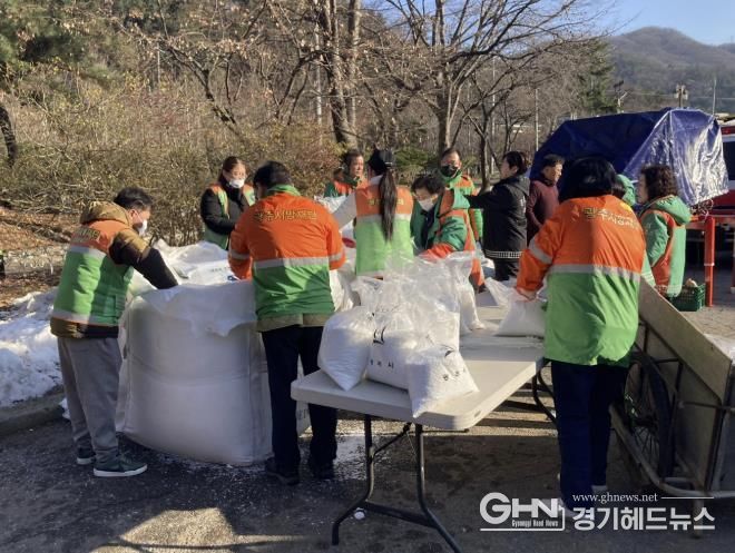 한편, 이날 제작된 염화칼슘 주머니는 강설 및 결빙 취약지역 제설함 내 비치, 긴급 제설 구역 살포 등 설해 대비에 사용될 예정이다.