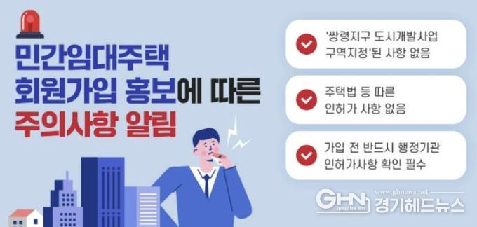 이와 관련 방세환 시장은 “시민들의 재산 보호를 위해 민간임대주택과 관련해 반드시 광주시(주택과, 도시사업과)에 인‧허가 여부를 확인해 달라”고 말했다.