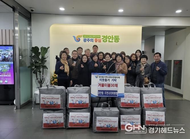 경기헤드뉴스 성미연 기자 | 광주시 경안동 주민자치위원회는 지난 11일 관내 어려운 이웃에게 전달해 달라며 겨울 이불 30채(180만 원 상당)를 경안동 지역사회보장협의체에 전달했다.