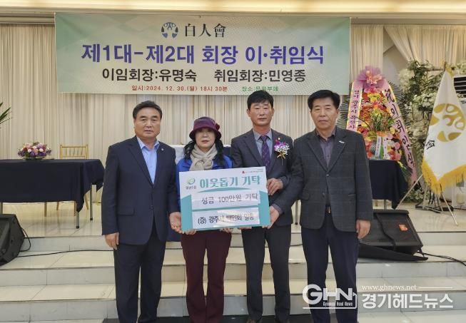 경기헤드뉴스 성미연 기자 | 광주시 봉사단체 백인회는 지난달 30일 광주시 광남1동에 이웃돕기 성금 100만 원을 전달했다.