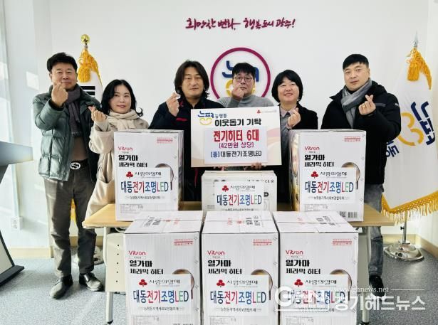 경기헤드뉴스 성미연 기자 | 광주시 능평동에 위치한 대동전기조명LED 장주형 대표는 9일 능평동 행정복지센터를 방문해 소외계층을 위한 이웃돕기 물품 벽걸이형 전기히터 6대(42만 원 상당)를 기탁했다.