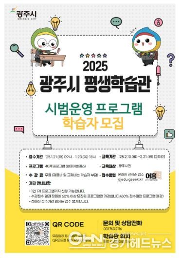 이와 관련 방세환 시장은 “2025년은 광주시가 평생학습의 새로운 가능성을 열어가는 한 해가 될 것”이라며 “내실 있는 평생교육 프로그램 기반 마련을 위한 이번 시범운영 및 3월 정규강좌 신청에 많은 시민들이 참여하길 바란다”고 말했다.