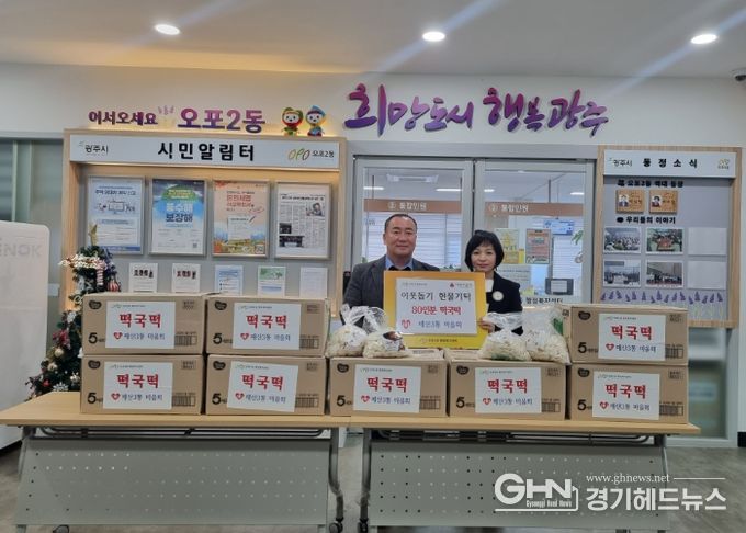 또한, 같은 날 광주시 매산3통 마을회도 오포2동에 떡국 세트 80인분을 기탁하며 명절의 따뜻한 정일 나눴다.