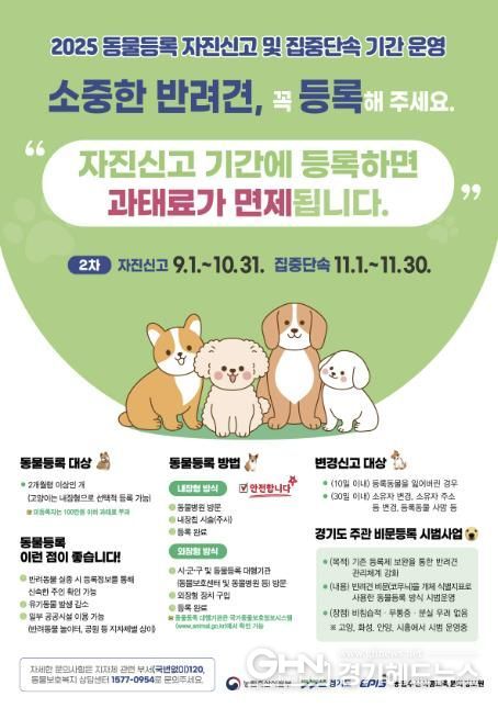경기헤드뉴스 성미연 기자 | 수원시가 동물의 유실·유기를 방지하기 위해 10월 31일까지 ‘동물등록 자진신고 기간’을 운영한다.