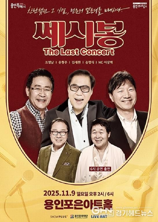 경기헤드뉴스 임수연 기자 | 용인문화재단은 오는 11월 9일 용인포은아트홀에서 ‘2025 쎄시봉 [The Last] 콘서트 – 용인’을 개최한다. 공연은 단 하루 오후 2시와 6시, 2회 진행된다.
