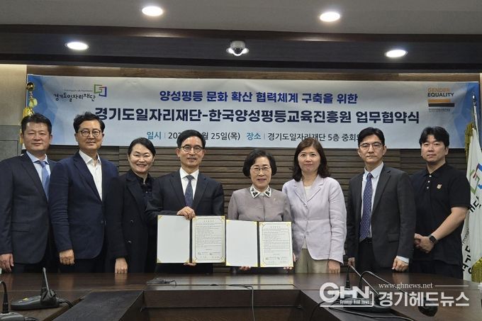 경기헤드뉴스 성미연 기자 | 경기도일자리재단은 25일 수원시에 위치한 남부사업본부에서 한국양성평등교육진흥원과 ‘양성평등 문화 확산과 폭력예방 의식 제고’를 위한 업무협약을 체결했다.