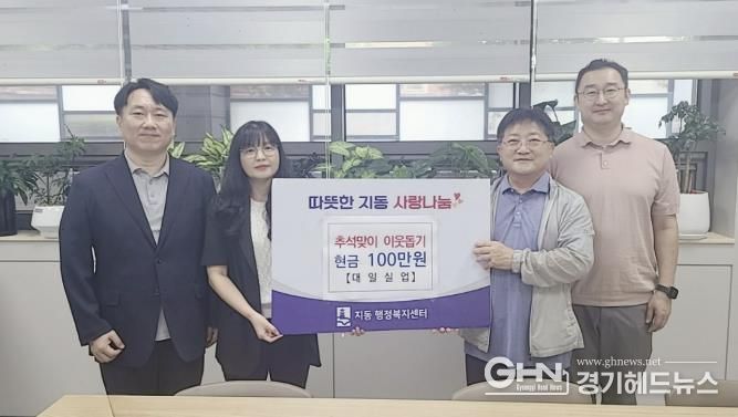 경기헤드뉴스 성미연 기자 | 지난 26일, ㈜대일실업은 추석 명절을 맞아 어려운 이웃을 위해 사용해 달라며 현금 1,000,000원을 지동 행정복지센터에 기탁했다.