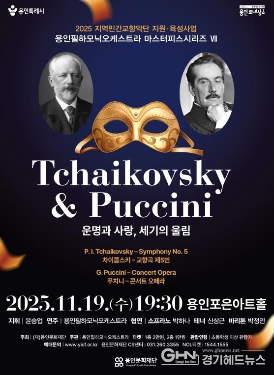 경기헤드뉴스 임수연 기자 | 용인문화재단은 오는 11월 19일 오후 7시 30분, 용인포은아트홀에서 용인필하모닉오케스트라(지휘 윤승업) ‘Tchaikovsky · Puccini '운명과 사랑, 세기의 울림'’ 공연을 개최한다고 밝혔다.