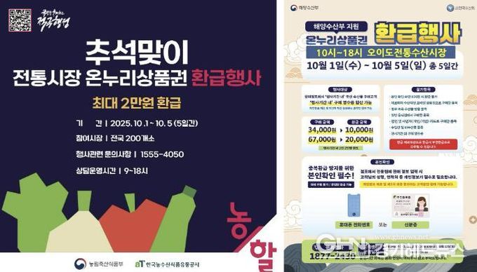 행사 기간 시민들은 지정 품목을 일정 금액 이상 구매하면 최대 30%(1인당 최대 2만 원 한도)의 금액을 온누리상품권으로 환급받을 수 있다. 구체적인 환급 기준은 ▲3만 4천 원 이상~6만 7천 원 미만 구매 시 1만 원 ▲6만 7천 원 이상 구매 시 2만 원이다. 환급을 원할 경우, 소비자는 구매 영수증을 행사 부스에 제출하고 본인 확인 절차를 거쳐 상품권으로 환급받을 수 있다.