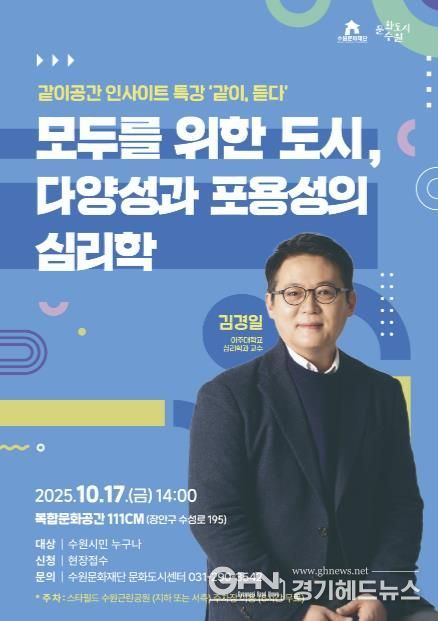수원문화재단 관계자는 “이번 프로그램이 문화도시 수원의 비전인 ‘서로를 살피고 문제에 맞서는 도시’를 실현하는 의미 있는 실천의 장이 되기를 바란다.”며, “특강으로는 우리 사회의 지향점을 고민해 보고, 부모집단상담으로는 양육의 어려움을 나누며 실질적 해법을 얻는 기회가 되기를 기대한다.”고 말했다.