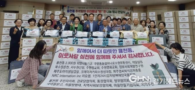 경기헤드뉴스 성미연 기자 | 수원시 장안구 율천동은 지난 29일, 추석명절을 맞이하여 관내 어려운 이웃에게 따뜻한 나눔을 전하고자 우리동네 ‘찐’한 나눔행사 전달식을 개최했다.