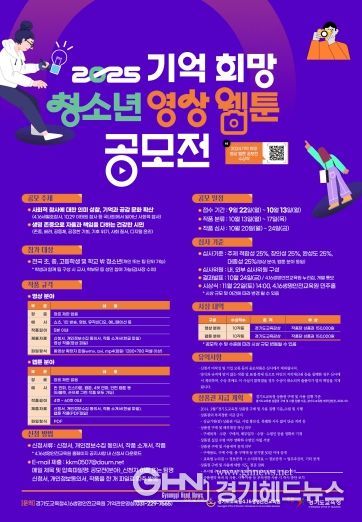 경기헤드뉴스 성미연 기자 | 경기도교육청4.16생명안전교육원이 ‘2025 기억 희망 청소년 영상‧웹툰 공모전’을 개최한다.