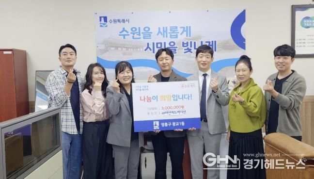 경기헤드뉴스 성미연 기자 | 수원시 영통구 광교1동은 ㈜이언에듀케이션으로부터 이웃돕기 성금 300만원을 기탁받았다고 밝혔다.