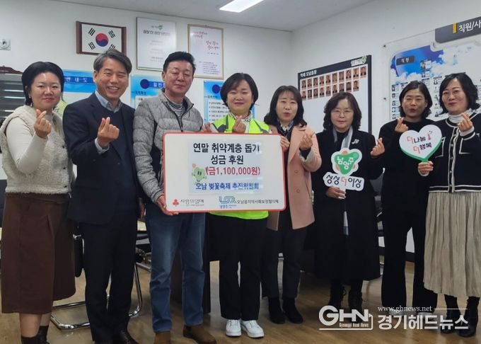 이석태 오남읍장은 “오남 벚꽃축제 추진위원회가 사랑나눔축제 수익금을 어려운 이웃을 위해 기부해 주셔서 감사하다”며 “이번 성금이 지역에서 따뜻한 나눔 문화 확산과 지속 가능한 복지 체계 구축에 중요한 계기가 될 것”이라고 말했다.