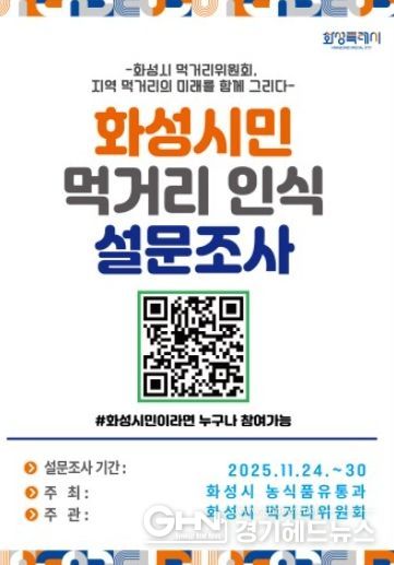 경기헤드뉴스 최보영 기자 | 화성특례시는 오는 30일까지 시민들이 체감하는 지역 먹거리 정책 수준과 관심 이슈를 파악하기 위해 화성시 먹거리위원회 주관 ‘화성시민 대상 먹거리 인식 설문조사’를 실시한다.