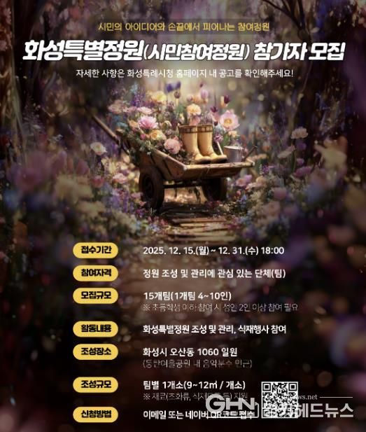 경기헤드뉴스 임채헌 기자 | 화성특례시는 시민이 직접 정원을 가꾸는‘화성특별정원(시민참여정원)’의 참여자를 이달 15일부터 31일까지 모집한다.