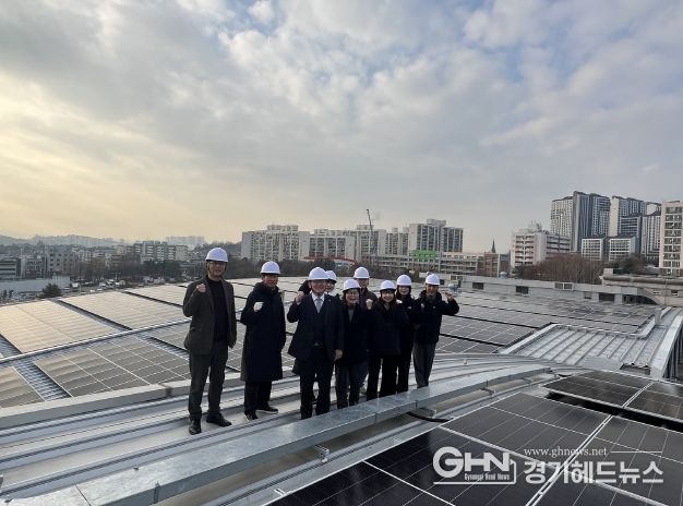 경기헤드뉴스 성미연 기자 | 경기도는 15일 수원월드컵경기장 스포츠센터 옥상에 설치된 태양광발전소를 방문해, 공공시설 유휴부지를 활용한 재생에너지 공급 확대 현황을 점검하고, 공공부문 RE100 달성을 위한 추진 상황을 공유했다. 이번 현장 방문에는 차성수 기후환경에너지국장을 비롯해 경기도수원월드컵경기장관리재단, 경기환경에너지진흥원 관계자들이 함께했다.