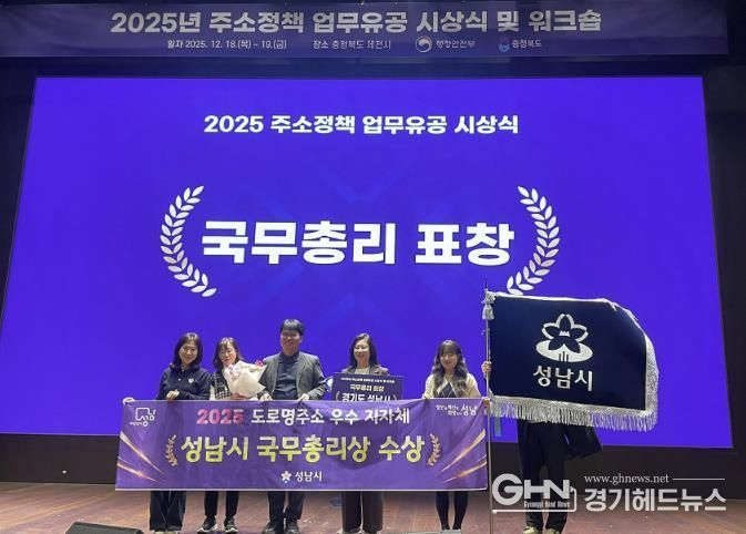 경기헤드뉴스 권준형 기자 | 성남시는 행정안전부가 주관한 2025년 주소정책 업무 평가에서 도로명주소 활성화 분야 우수 지자체로 선정돼 국무총리 기관표창을 수상했다고 19일 밝혔다.
