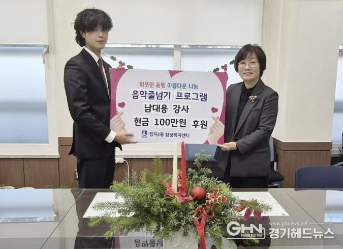 경기헤드뉴스 권준형 기자 | 수원지 장안구 정자3동 주민자치센터 음악줄넘기 프로그램 남대용 강사가 연말을 맞아 이웃돕기 성금 100만 원을 동 행정복지센터에 전달했다.