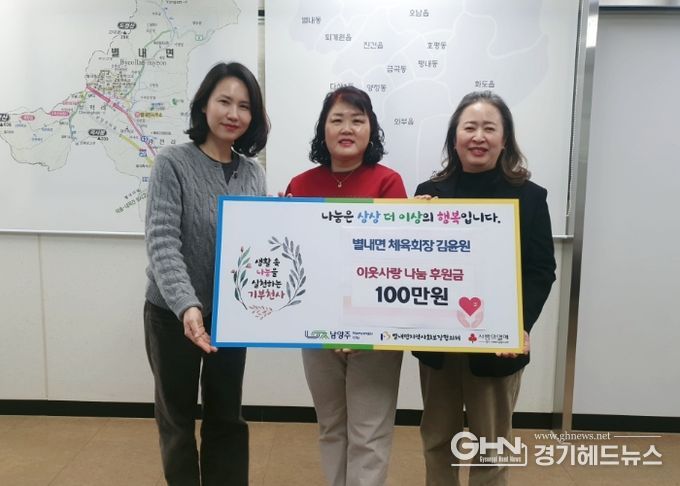 경기헤드뉴스 권민성 기자 | 남양주시는 지난 19일 김윤원 별내면 체육회장이 지역 내 취약 가구 지원을 위해 이웃사랑 성금 100만 원을 별내면 지역사회보장협의체에 기탁했다고 22일 밝혔다.