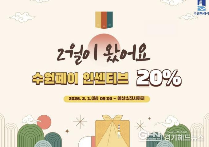 경기헤드뉴스 권준형 기자 | 수원특례시가 설 명절을 맞아 2월 수원페이 인센티브를 20%로 확대한다.