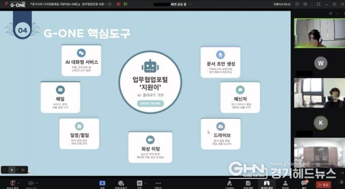 이번 교육은 경기도교육청에서 교직원의 업무경감을 위하여 야심 차게 추진 중인 업무협업포털 ‘지원이(G-ONE)’의 현장 안착을 지원하고, 디지털 기술을 활용한 행정 업무의 효율성을 높이기 위해 마련됐다. 아울러, 교육은 ‘지원이(G-ONE)’플랫폼 내 화상회의 기능인 ‘지원이(G-ONE) 미팅’을 통한 실시간 온라인 방식으로 진행됨에 따라 ‘지원이(G-ONE)’의 기능을 보다 현실감 있게 전달하는 계기가 됐다.