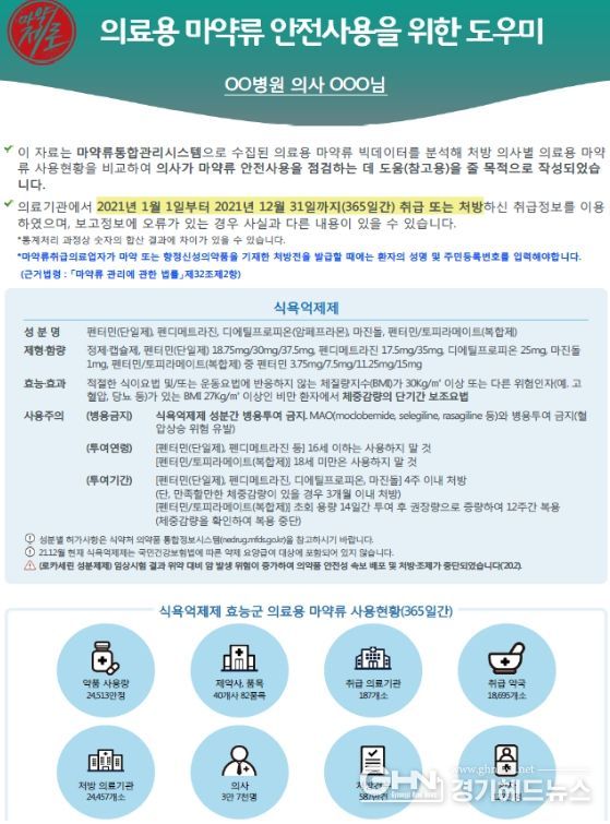 이번 안전사용 도우미 서한은 마약류 통합관리시스템으로 수집된 2021년 의료용 마약류 28개 성분에 대한 처방 통계 빅데이터 자료를 분석해 작성했습니다.
