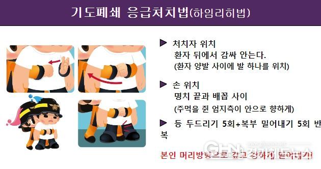 돌 이전 아이의 경우 복부 밀어내기(일명 하임리히법) 대신 영아 하임리히법을 해야 하는데 정확한 하임리히법이나 교육을 원하는 경우 가까운 소방서에 문의하면 안내받을 수 있다.