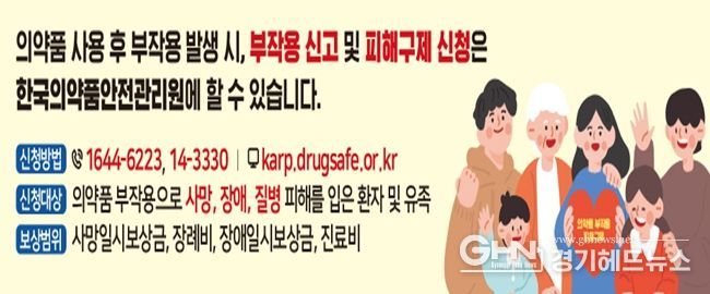 경기헤드뉴스 임수연 기자 | 식품의약품안전처는 환자가 의약품 용기‧포장이나 첨부문서 등에서 의약품 부작용 신고와 피해구제 신청 방법을 쉽게 확인할 수 있도록 안내하는 ‘부작용 피해구제 안내 표준 도안’을 마련해 제약업체와 관련 단체에 배포한다.