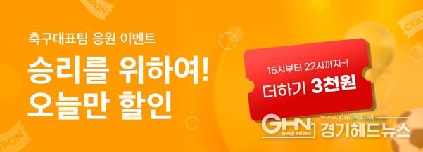 경기도주식회사는 오는 28일 열리는 2022 카타르 월드컵 가나 전(戰)을 앞두고, 대한민국 국가대표팀의 선전을 위한 할인 이벤트 ‘승리를 위하여! 오늘만 할인’을 또 한 번 진행한다고 27일 밝혔다.
