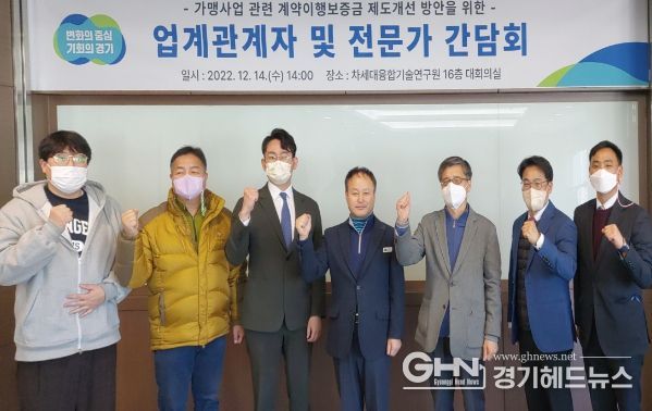 경기도가 가맹본부의 경영악화‧파산 등으로 가맹 계약이행보증금을 돌려받지 못하는 가맹점주를 위해 지난 14일 수원 차세대융합기술연구원 대회의실에서 ‘가맹사업 관련 계약이행보증금 제도개선 방안에 대한 업계관계자 및 전문가 간담회’를 열었다.
