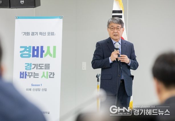 경기도는 21일 도청 다목적회의실에서 ‘경기도 미래차 부품산업의 현황과 과제’를 주제로 ‘기회경기 혁신포럼-경바시(경기도를 바꾸는 시간) 시즌 1’ 다섯 번째 특강을 진행했다. 강의는 도 공식 유튜브 채널을 통해 생중계됐다.