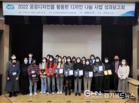 경기헤드뉴스 성미연 기자 | 경기도가 27일 경기도경제과학진흥원에서 홍지선 경기도 도시주택실장, 이영희 경기도의회 의원, 수탁기관 디자인전문기업 ㈜매스씨앤지, 동서울대·신한대·한양대 교수 및 대학생, 디자인 전문회사(디토, 디자인미창), 경기도립노인전문병원 관계자 등 60여 명이 참석한 가운데 ‘2022 디자인 나눔 성과보고회’를 개최했다.