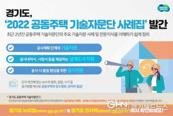 경기헤드뉴스 성미연 기자 | 경기도가 공동주택 기술자문단 운영 현황과 주요 기술자문 사례를 담은 ‘2022 경기도 공동주택 기술자문단 사례집’을 발간했다고 5일 밝혔다.