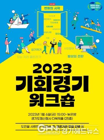 5일 경기도에 따르면 도는 6일 오후 3시부터 늦은 밤까지 시간의 제약 없이 경기도 기회정책에 대한 청사진과 사회 전 분야에 대한 자유토론의 내용으로 ‘2023 기회경기 워크숍’을 연다. 워크숍에는 김동연 경기도지사와 행정1․2․경제부지사, 정책․정무․행정․기회경기수석, 실․국장, 공공기관장, 도정자문위원 등 80여 명이 참석한다.