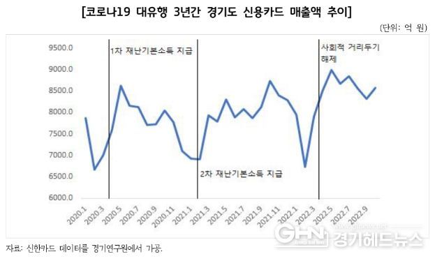 경기헤드뉴스 성미연 기자 | 코로나19 대유행이 시작된 2020년 이후 3년간 경기도 신용카드 매출액은 매년 완만히 상승했으며 주유, 스포츠/문화/레저, 여행/교통 업종의 매출액 증가율이 높다는 연구 결과가 나왔다.