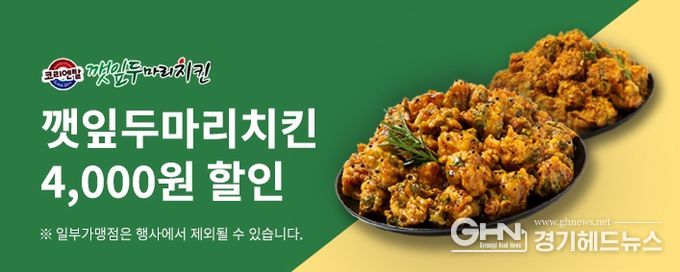 경기도주식회사는 28일까지 진행되는 6개 프랜차이즈 브랜드 이벤트에 치킨 브랜드 ‘코리엔탈깻잎두마리치킨’ 소비자 이벤트를 추가 진행한다고 19일 밝혔다.