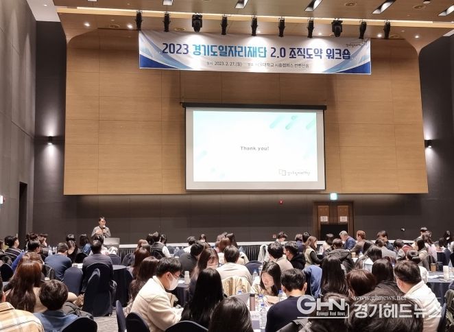 경기헤드뉴스 성미연 기자 | 경기도일자리재단은 대내외 경영 현안 대응 및 일자리창출 목표 공유를 위해 전 직원이 참석한 ‘2023년 재단 시즌2 조직 도약 워크숍’을 지난 27일 개최했다.