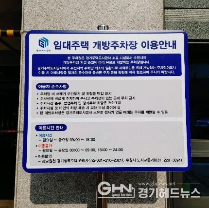 경기헤드뉴스 성미연 기자 | 경기주택도시공사는 주택가 주차난 해소를 위해 도내 최초로 건설형 임대주택 3개 단지의 주차장을 개방 운영하고 있다고 밝혔다.