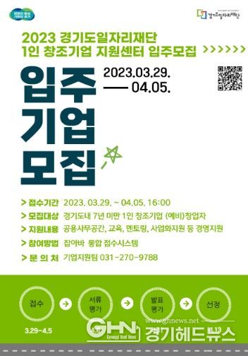 접수기간은 3월 29일에서 4월 5일(오후 4시 마감)까지로, 공고일 기준 경기도에 주소를 둔 1인 창조기업 예비 창업자이거나, 경기도 내에 주된 사무소를 둔 창업 7년 이내의 1인 창조기업 창업자라면 신청할 수 있다.
