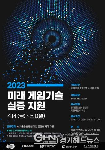 경기헤드뉴스 성미연 기자 | 경기도가 미래기술 게임산업을 선도할 ‘2023 미래 게임기술 실증지원’ 참여 기업을 5월 1일까지 모집한다.