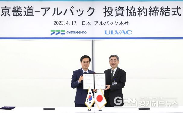 김동연 지사는 17일 오후 가나가와현 지가사키시 알박(ULVAC)그룹 본사에서 이와시타 세츠오(Iwashita Setsuo) 대표이사와 이런 내용을 담은 ‘경기도-주식회사 알박 투자양해각서’에 서명했다.
