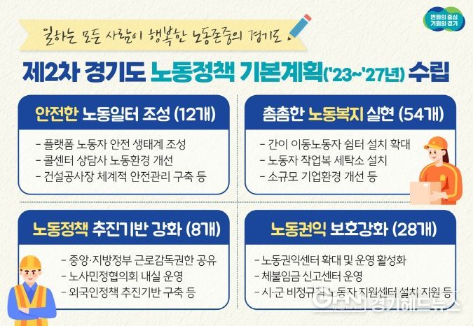 경기도는 이 같은 내용을 담은 제2차 경기도 노동정책 기본계획을 수립·시행한다고 1일 밝혔다.