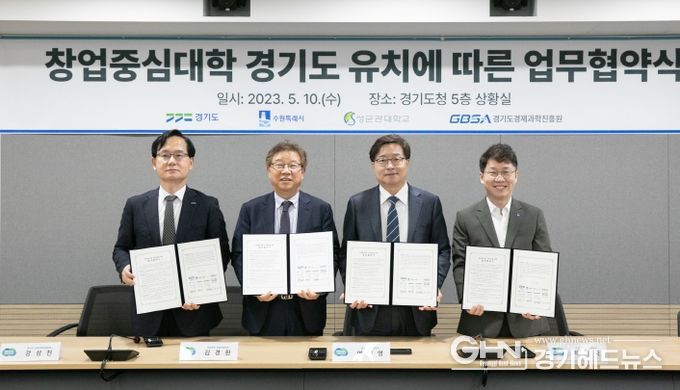 경기헤드뉴스 성미연 기자 | 경기도가 중소벤처기업부 창업중심대학 공모사업에 선정된 가운데 사업의 효과적인 추진을 위해 수원시, 성균관대학교, 경기도경제과학진흥원과 힘을 모으기로 했다.