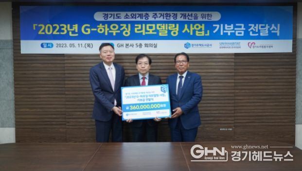 경기헤드뉴스 성미연 기자 | 경기주택도시공사(GH)가 G-하우징 리모델링 사업 추진을 위해, 기부금 전달식을 개최하고 유엔해비타트 한국위원회, 경기도자원봉사센터에 3억 6천만원을 기부한다고 밝혔다.