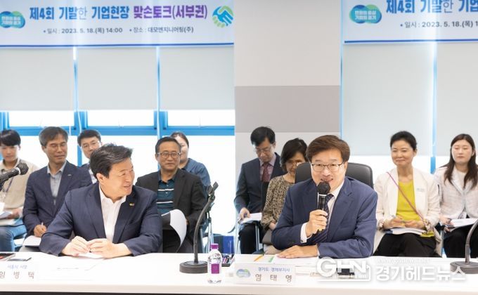 경기헤드뉴스 성미연 기자 | 염태영 경기도 경제부지사는 기업 현장 의견을 듣고 고충을 해결하기 위해 시흥시 대모엔지니어링에서 ‘제4회 기발한 기업현장 맞손토크’를 열고 경기도 서부권역 소재 기업인들과 소통의 시간을 가졌다.